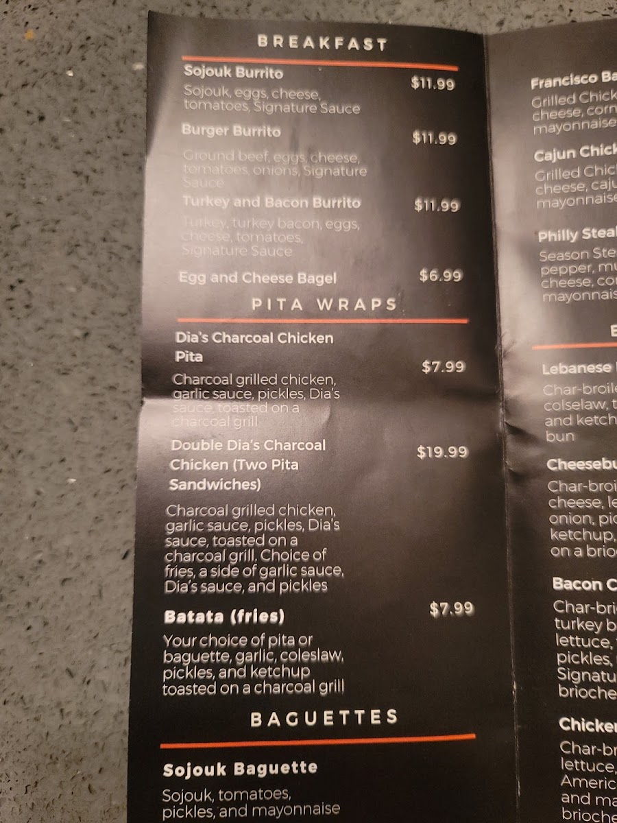 Overall, the Dia’s Charcoal Grill Menu provides a mix of Mediterranean-inspired flavors and classic American comfort food, all served with a unique twist. Whether you’re here for a quick bite or a full meal, the variety of options ensures there’s something for everyone.